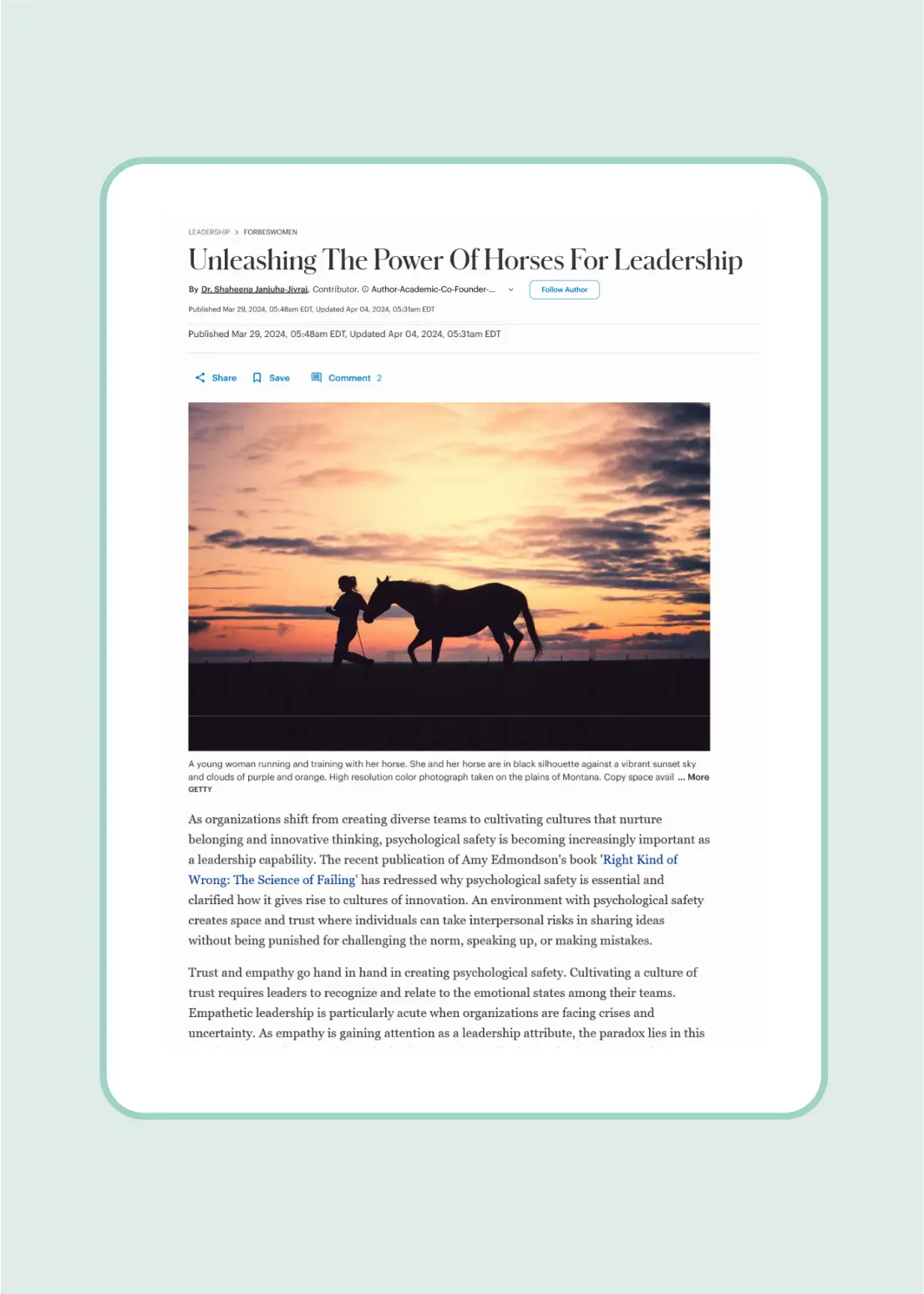 Articol publicat în revista Forbes: Unleashing The Power Of Horses For Leadership